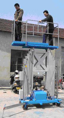 尼泊爾客戶定做的伸縮式鋁合金升降機(jī)制作完畢